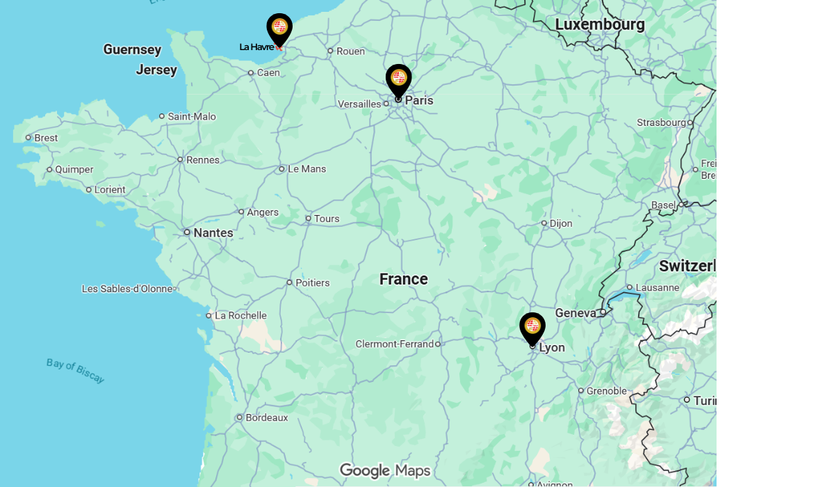With offices strategically located near the major industrial hubs and ports namely Paris, Lyon, Toulouse, and Nantes, we deliver the personalized service across all the major international airports (including Paris-Charles de Gaulle (CDG), Lyon-Saint Exupéry (LYS), and Paris-Orly (ORY)), major seaports (Le Havre, Marseille-Fos, Dunkerque, Rouen, and Nantes-Saint Nazaire) to more than 160 countries.
