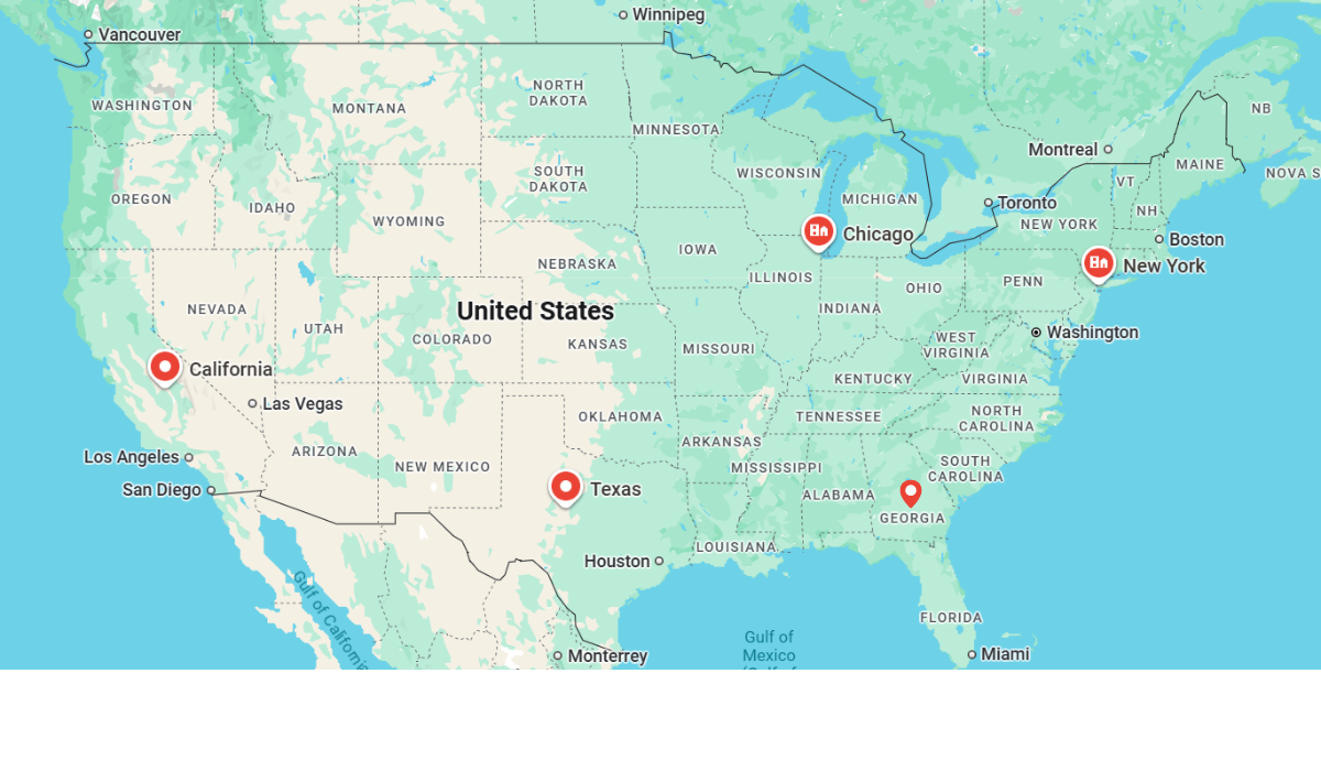 New York, California, Chicago, Texas, Georgia