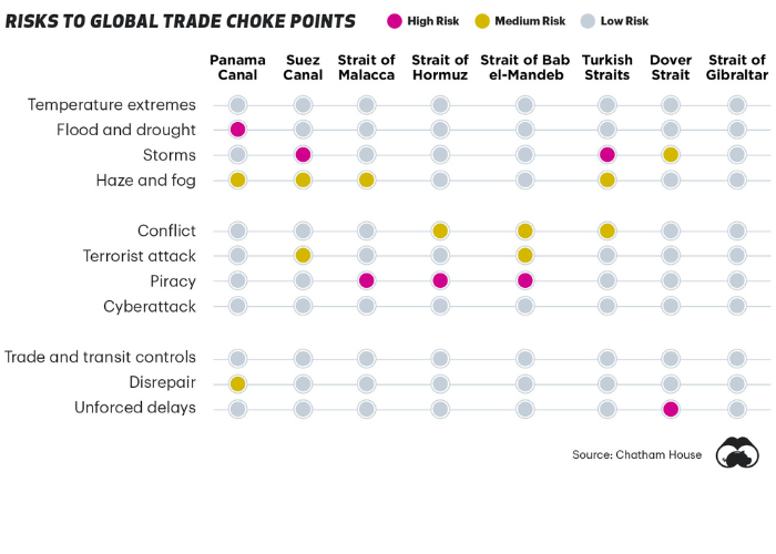 These narrow maritime passages are critical for global trade, especially for energy and food supplies, and their disruption can have significant, far-reaching economic and systemic consequences. Disruptions at key ocean trade routes can significantly impact the global economy given that 90% of traded goods continue to be shipped by sea, according to the International Maritime Organization.